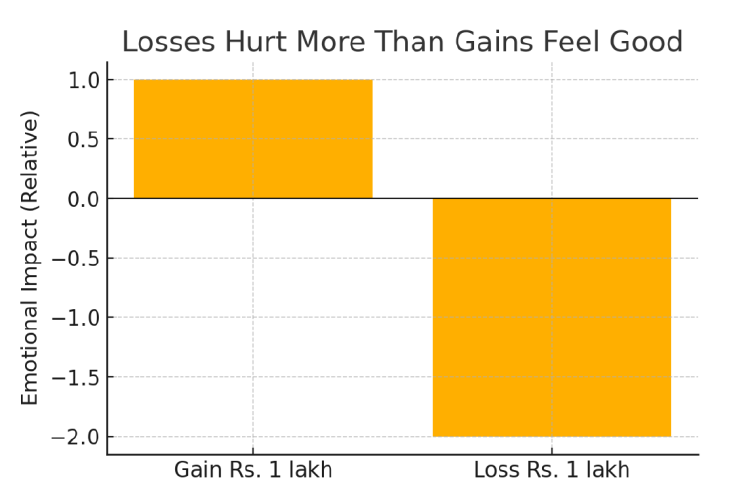 The human brain is wired to avoid pain - and a falling portfolio feels like a personal loss. Behavioral finance studies show that losses hurt about twice as much as equivalent gains feel good. In simple words, losing Rs. 1 lakh feels far worse than the happiness of gaining Rs. 1 lakh.